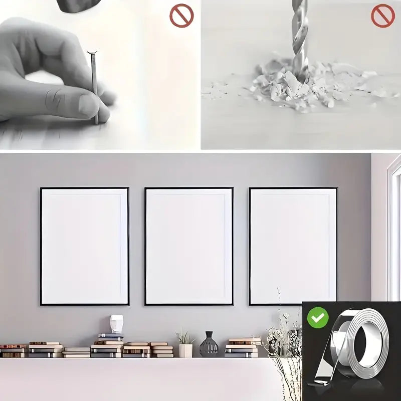 Con nuestra cinta doble faz ultra resistente puedes colgar cuadros, organizar cables, fijar objetos y decorar sin perforaciones. Se adhiere a cualquier superficie como vidrio, madera, cerámica y más, sin dejar rastros.