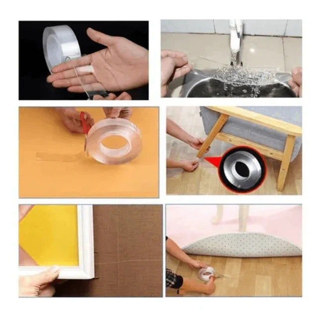 Cuando pierda adhesión, simplemente lávala con agua y recupérala al instante. No gastes en cintas de un solo uso, esta es ecológica y duradera.